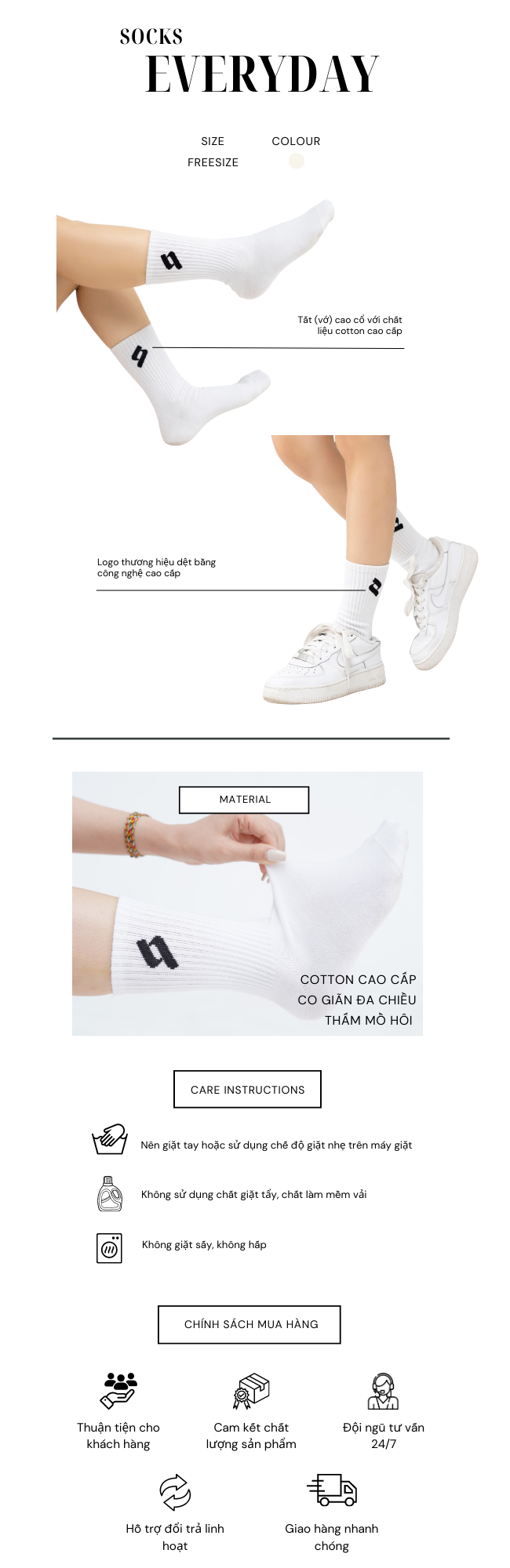 Everyday Socks - Tất (Vớ) Cao Cổ EQL - Freesize120.000 ₫